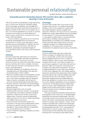 Sustainable personal relationships between 3PLS and their clients offer a competitive