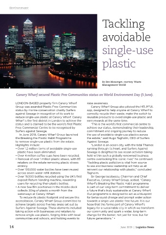Group was awarded Plastic Free Communities Canary Wharf Group also piloted the HELPFUL