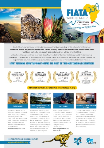 immerse yourself in Africa. includes green fees, transport, Congress week. special discounted accom-