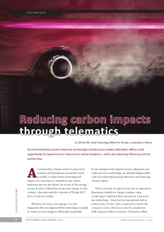 16 NO V E MB E R/D E C E MB E R 2022 fifth of global carbon emissions. Telematics offers