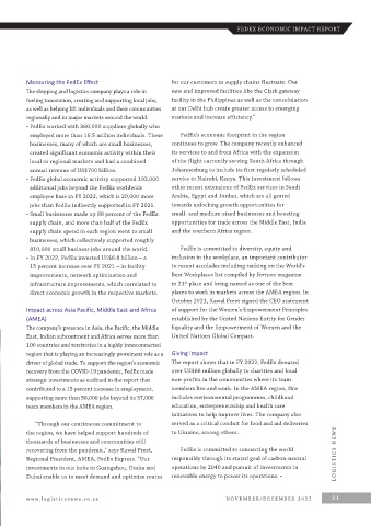 driver of global trade. To support the region’s economic The report shows that in FY 2022, FedEx donated