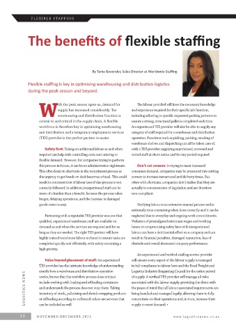 L O GI S T I CS NEWS include working with loading and offloading containers associated with the labour supply, providing the client with