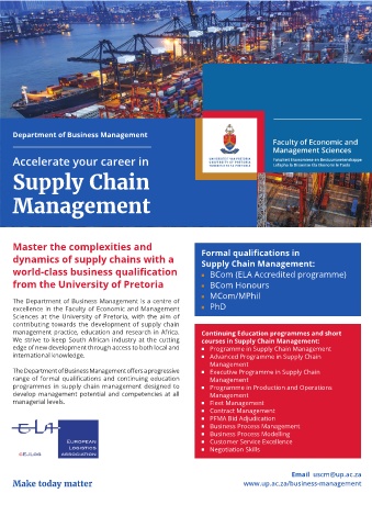 The Department of Business Management offers a progressive Executive Programme in Supply Chain